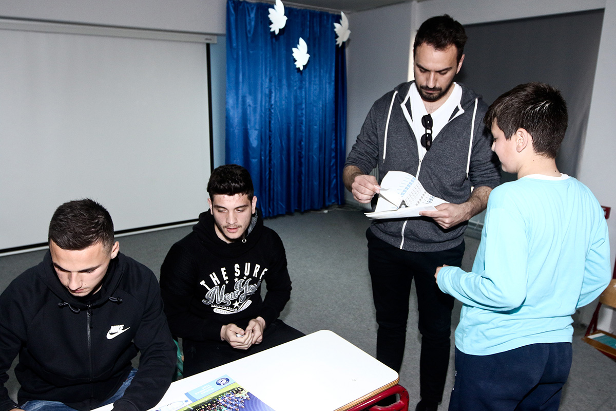 Οι μαθητές ζητωκραύγαζαν και επευφημούσαν για τους ποδοσφαιριστές του Ατρομήτου Σπύρο Νάτσο και Κωνσταντίνο Κωτσόπουλο, οι οποίοι απάντησαν στις ποδοσφαιρικές τους απορίες και υπέγραψαν δεκάδες αυτόγραφα για τα μικρά παιδιά.